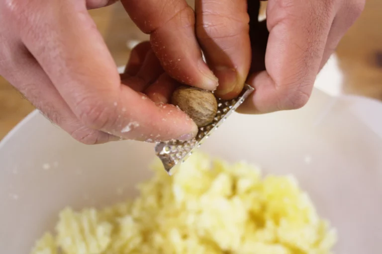 - Trempam la patata, dins un bol, amb un polsim de sal i nou moscada al gust.
