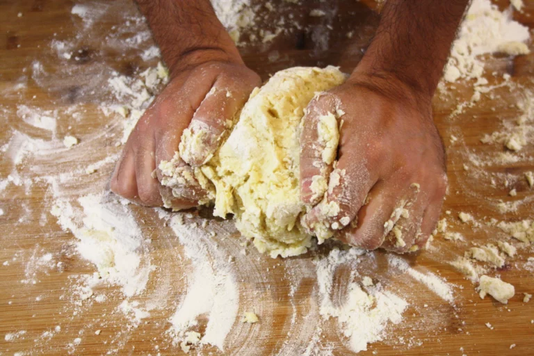 - Començam a pastar els tres ingredients, afegint farina si trobam que en fa falta més. Hem de pastar almanco durant cinc minuts, fins que la pasta tengui una consistència elàstica. A diferència de la pasta fresca amb ou, no fa falta deixar reposar la pasta abans de treballar-la.