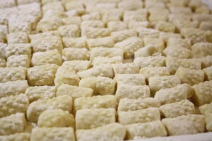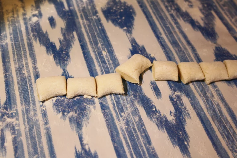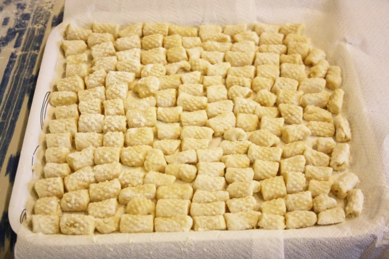 - A mesura que els anam fent, col·locam els gnocchi damunt una palangana enfarinada.