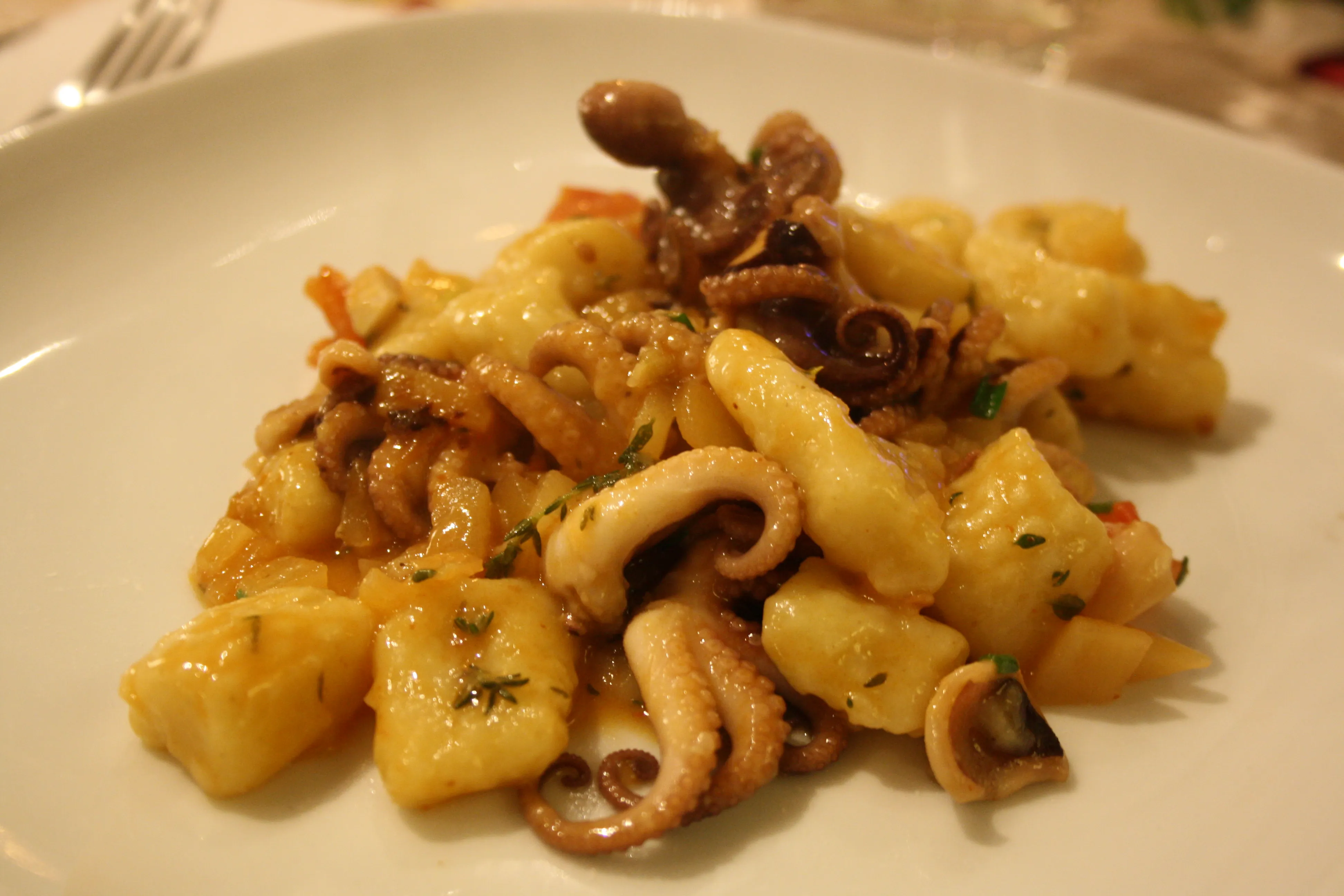 De petit, en Luca no volia menjar patates… i llavors la seva nonna Magliù li feia preparar amb ella els gnocchi… Es divertíem empastant i dant-los formes d’allò més diverses. Després, tanmateix, en menjava ben pocs. El mínim per fer-la contenta… Ha estat més tard que va saber apreciar aquests gustos, els perfums.. aqueix punt de nou moscada en la pasta. I a més els gnocchi es poden acolorir, amb espinacs, amb tinta de sípia… o amb allò que més vos inspiri. Els gnocchi de patata, tendres i simples. Gràcies Nonna… ara ja és cuit!