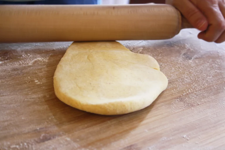 - En haver reposat, serà coneixedor que la pasta és més elàstica. La dividim en dues parts, una de les quals embolicam i reservam. Prenem una bolla de pasta petita i l’aplanam, primer amb les mans i llavors amb l’aprimador.