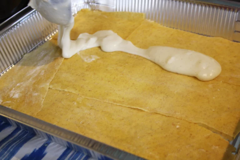 - Ara ja ho tenim tot a punt i només ens queda muntar el plat dins el motlo. Començam amb una capa de “lasagne”, que cobrim de beixamel.