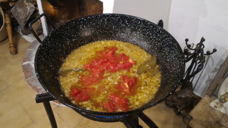 - Començam a fer el sofregit. Coem primer la ceba deu minuts, i després hi afegim la tomàtiga, i ho feim coure deu minuts més. No hem de frissar amb el sofregit, és un dels secrets!