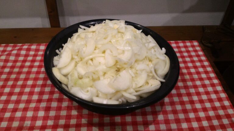 - Tallam les cebes a la juliana, i les reservam. A part, tallam dues de les cebes ben petites, que farem servir per al sofregit.