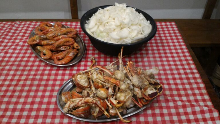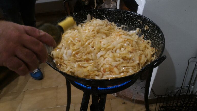 La recepta que vos present avui, doncs, és apresa de mon pare, pescador de naixement i cuiner de primera. En aquesta ocasió vàrem cuinar per 10: aquest és un d’aquells plats que surt més bo per a molta gent.