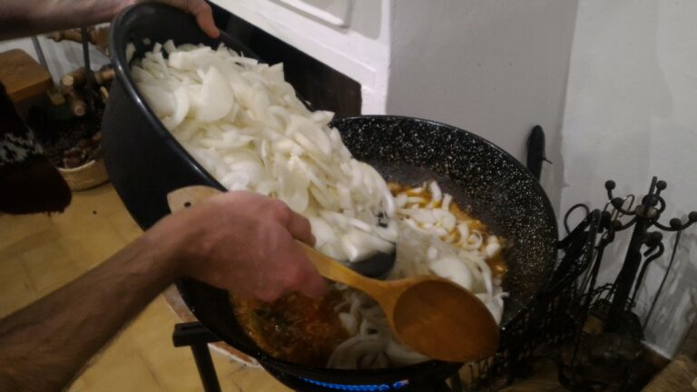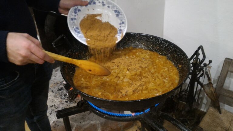 - Ho feim coure fins que la ceba hagi minvat. Necessitarà almanco una hora. Si en cap moment trobau que hi ha poc brou, podeu afegir un parell de tassons d'aigua, perquè cogui millor.