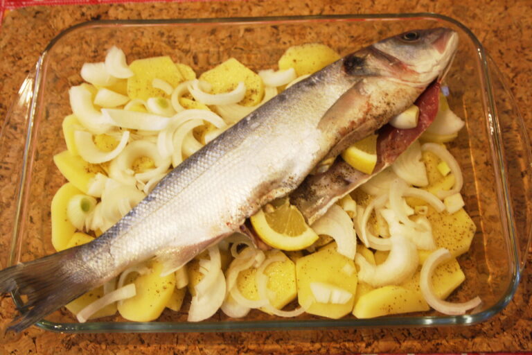 Aquesta recepta la podem fer amb qualsevol peix, però no és recomanable amb els peixos més tous (com el rap o el lluç), que són massa delicats per a la cocció al forn. Ho podem fer amb un déntol, un anfós, un pagre… o un llobarro, com aquest cas.