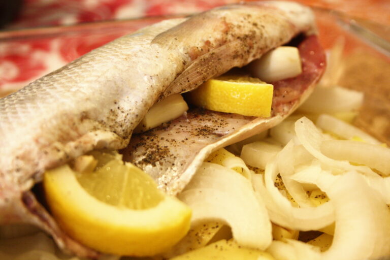 - Farcim el peix (net, escatat i sense butzes) amb tallades de llimona i un o dos alls sencers. També el salpebram.