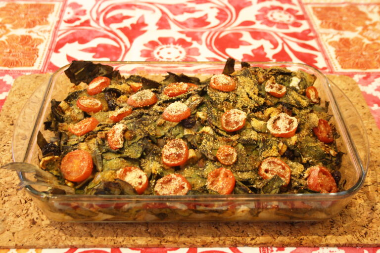 - Tapam el peix amb les verdures trempades. Hem de posar verdura abastament, fins que tot estigui ben tapat.
