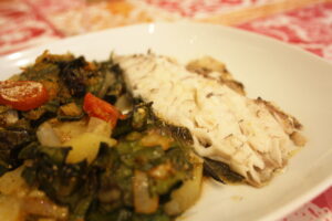 És el plat ideal per a un sopar lleuger o bé com a segon plat en un dinar. El peix queda tan gustós que no necessita cap salsa d’acompanyament, amb el suquet de les verdures n’hi ha prou.