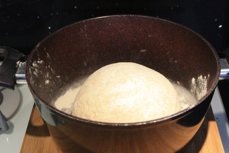 - Deixam reposar la pasta fins que tovi bé (2-3 hores). No fa falta que dobli el volum, però si ara s’infla bé el segon tou serà ràpid.