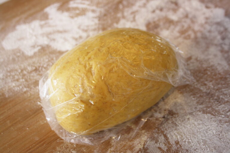 - Una vegada obtinguda una pasta homogènia l’embolicam amb pel·lícula transparent i la deixam reposar per almanco mitja hora.