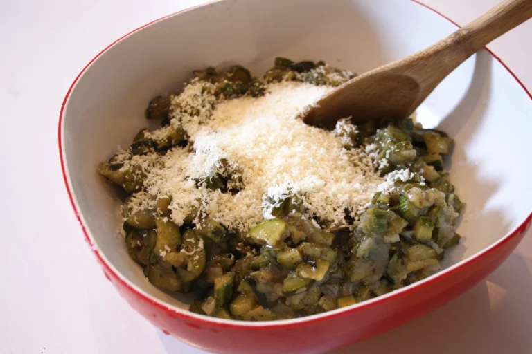 3. Una volta ultimata la cottura, otterrete un composto denso. Versatelo in un recipiente ad aggiungete il parmigiano precedentemente grattugiato.