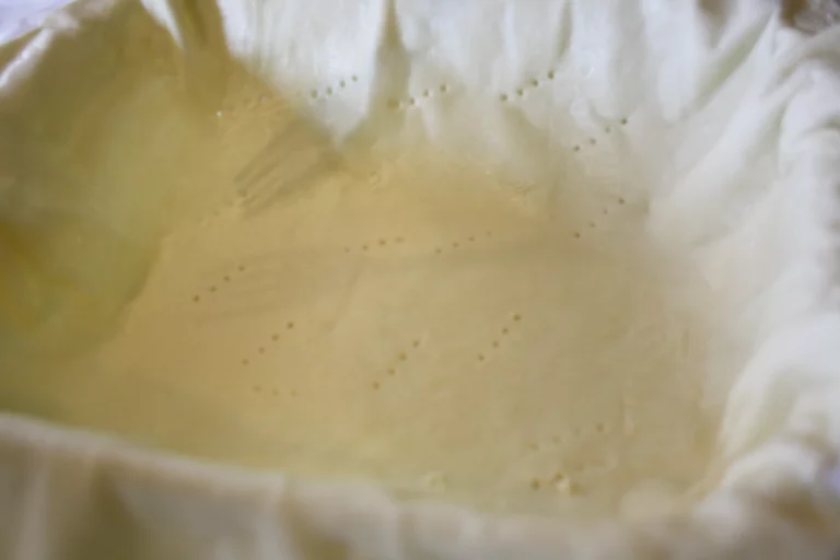 5. Esteneu la pasta de fulls damunt d’un motlo redó i foradau-la amb una forqueta.