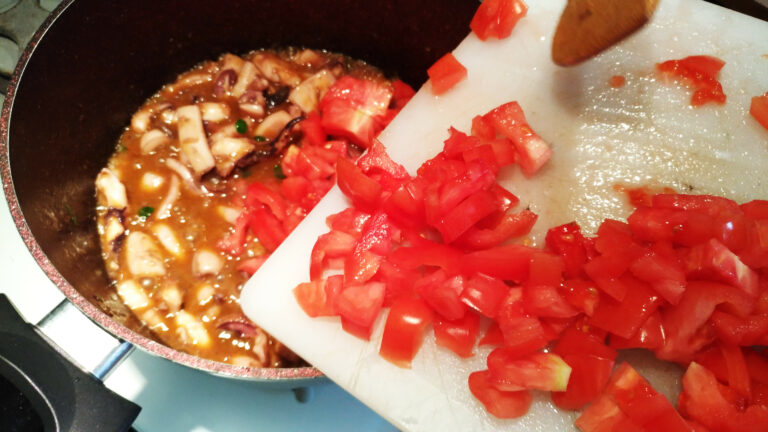 Dues sípies fresques! Julivert de l’hort i vi blanc… I els consells de la meva zia Rita, alguns dels seus secrets. Un gra d’all i amor, per la mar… pels seus fruits. Una recepta de la tradició de la meva terra, que rere les muntananyes explica històries de mar, com poques al món. Llestos a capficar-vos-hi??? …als fogons!